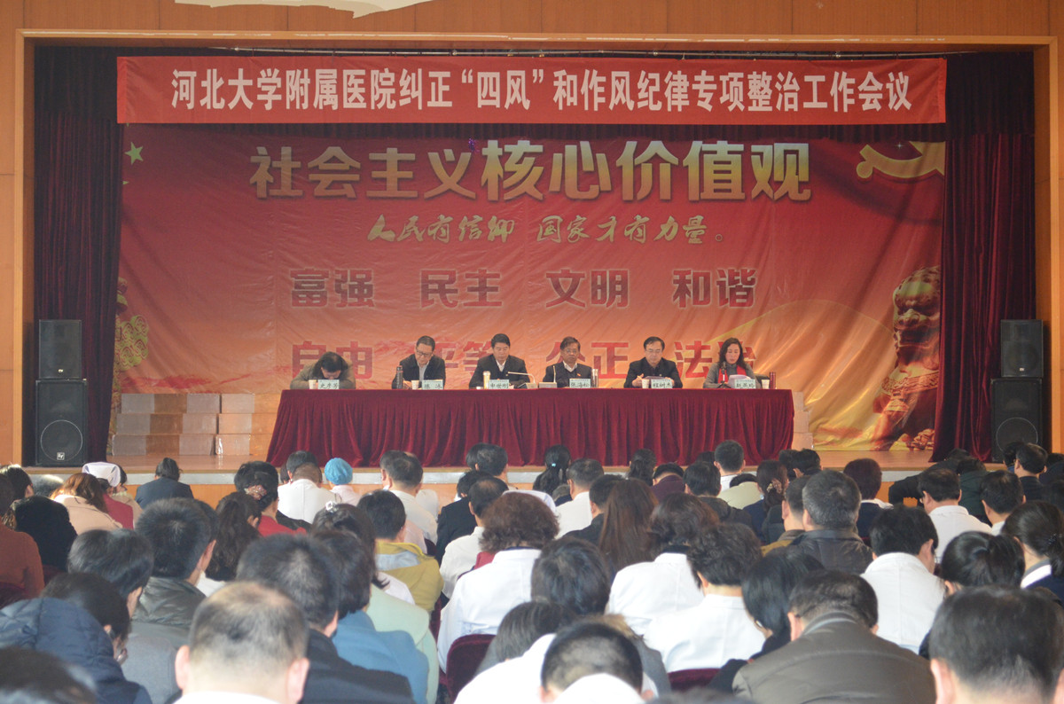 3月2日下午,根据院党委安排,我院在大礼堂组织召开了纠正“四风”和作风纪律专项整治工作会议。河北大学副校长、我院党委书记申世刚,党委副书记、院长张海松,党委副书记陈冰,副院长程树杰,副院长史彦芳,纪委书记赵燕玲出席会议,全院中层干部参加了会议。