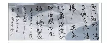 学习结束后,我院党委副书记陈冰和纪委书记赵燕玲共同书抒发了观后感语“西门治邺清正做官风清扬正气,从严治党依法治国不忘初心铸医魂”,并由中国书法家协会会员、保定市著名书法家、我院第一党总支党员李伟题写成作,赠与展馆永久保存。