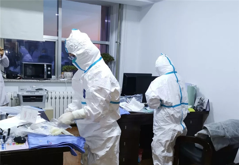 韩颖指导齐齐哈尔疾控人员穿脱防护用品