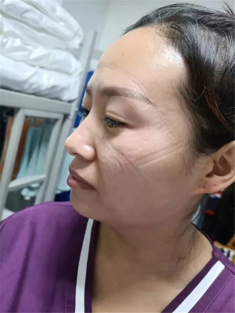 到岗后,邢倩主动要求上夜班。除了为发热患者做基础的治疗与巡视外,还要承担对患者的日常生活护理。发热患者时常表现出紧张、烦躁的情绪,每天焦急地等待着各项检测结果,期盼着早日回家。很多发热患者年纪都不大,独自隔离让他们的心情不言而喻。夜已经深了,病房的呼叫铃声却没有安静下来,一会儿2床的小姑娘觉得喉咙干要喝水;一会儿8床的大叔体温升高了需要做降温治疗……不经意间,天边已经泛起了鱼肚白。早晨交接班后,在脱下厚厚的防护装备的那一刻,邢倩疲惫地大喘一口气,“能顺畅呼吸真好。”此时她憋得通红的脸上,额头、鼻子被压的满是深深的印迹,衣服也早已被汗水湿透。