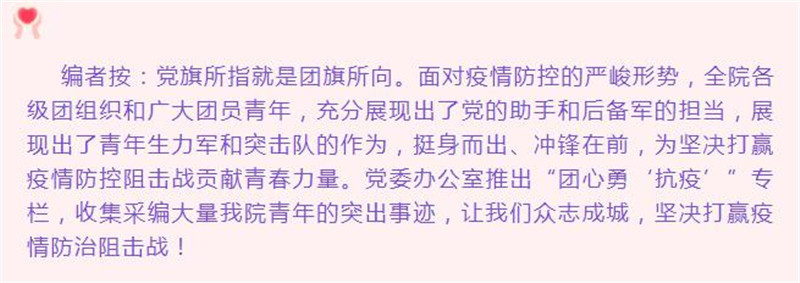 这只是我院白衣天使奋战的一个缩影。为了筑牢城市的防火墙,多少医护人员舍小家,顾大家,凝心聚力,负重前行。相信只要坚定信心、同舟共济、科学防治、精准施策,我们就一定能打赢疫情防治阻击战!
