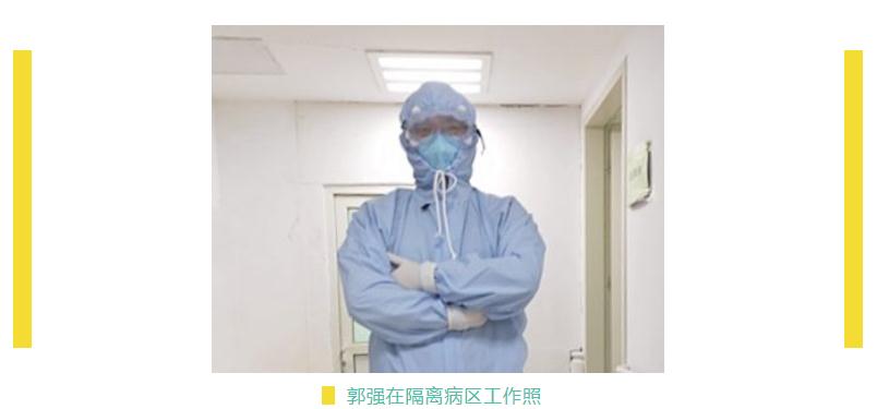 有位年轻男性患者,有外出旅游史,出现发热后来我院就诊于发热门诊,到隔离病房等待排查病情结果时一直处于焦虑状态,不停询问新冠肺炎发生的病症,担心被传染了病毒会失去生命。郭强耐心地给他做专业的病情解答,并开导他说,感染病毒最怕你这样的肌肉男,病毒真要到了你体内也活不了。这位患者终于被逗笑了,情绪缓和了下来。