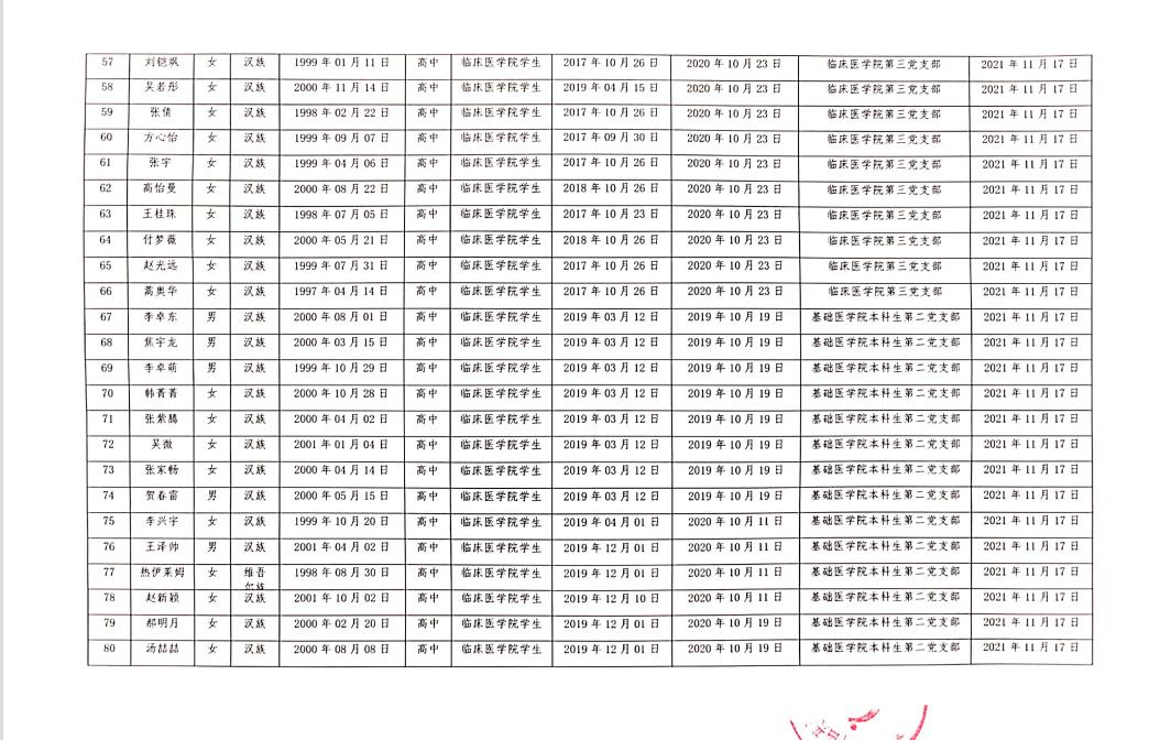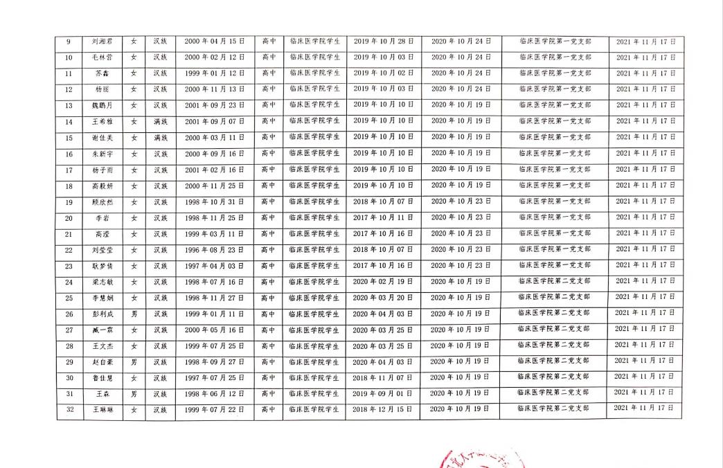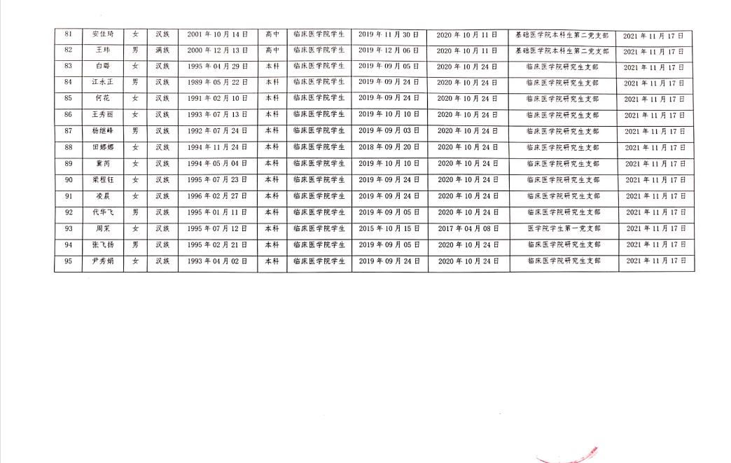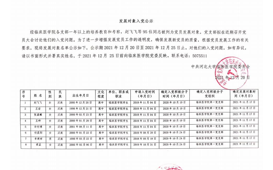 河北大学临床医学院关于赵飞飞等95名同学发展对象入党的公示