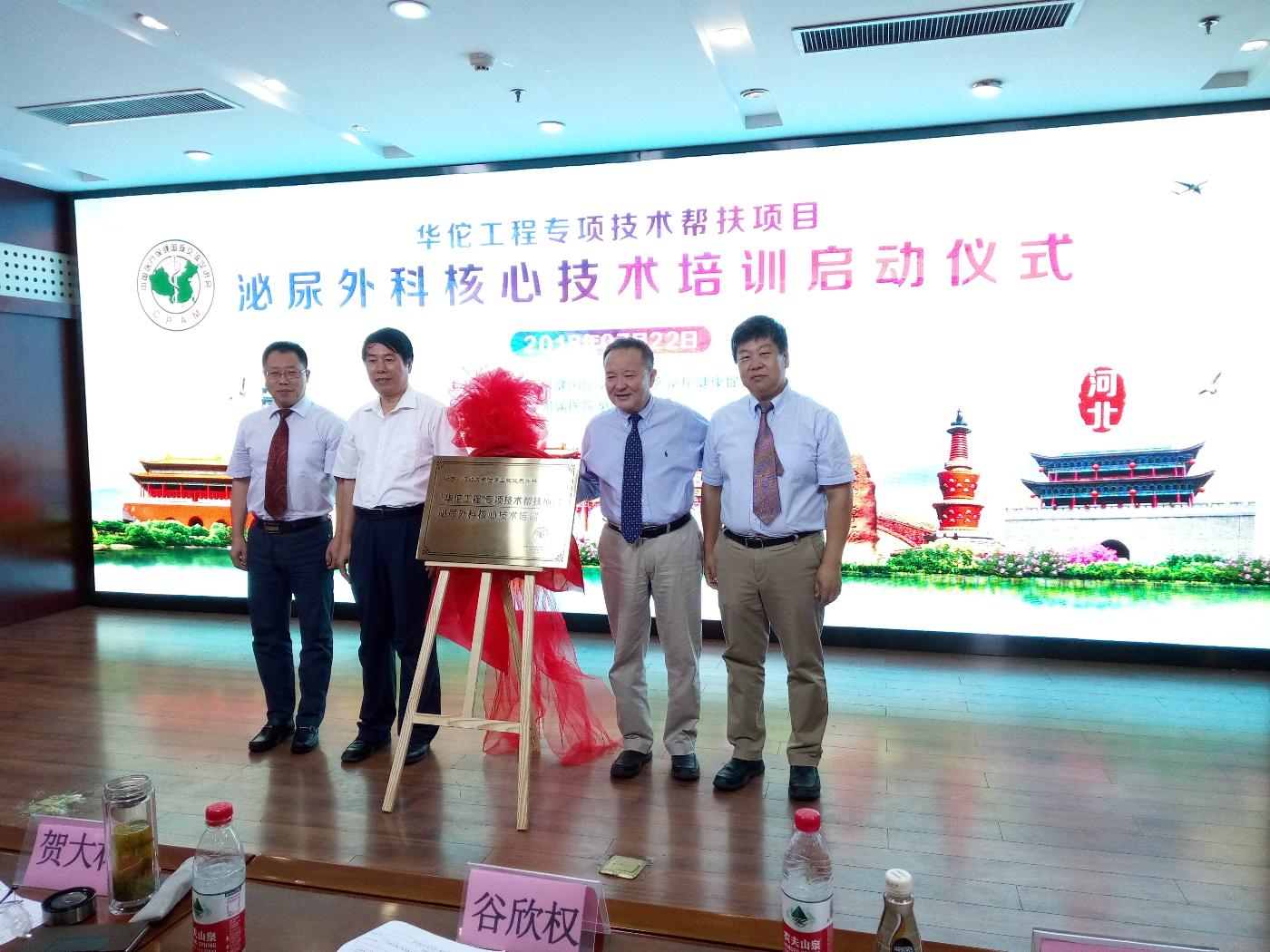 本次会议为期两天,7月21日开幕式上hy590海洋之神检测中心泌尿外科主任杨文增教授致开幕词,张海松院长出席会议并致欢迎辞。7月22日启动仪式上河北大学副校长、hy590海洋之神检测中心党委书记申世刚教授、中国医促会泌尿健康促进分会主任委员贺大林教授分别致辞。贺大林教授、申世刚教授、张明教授、杨文增教授共同并为hy590海洋之神检测中心泌尿外科“华佗工程”泌尿外科核心技术培训项目揭牌。hy590海洋之神检测中心泌尿外科马涛副主任主持开幕式。