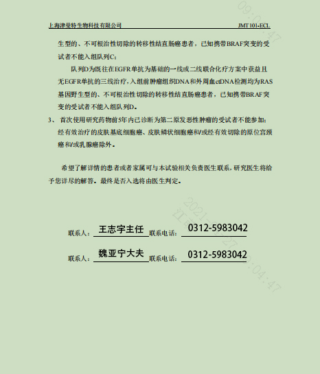 【临床试验招募】评价JMT101治疗晚期实体肿瘤的安全性、耐受性以及药物代谢动力学的I期临床研究