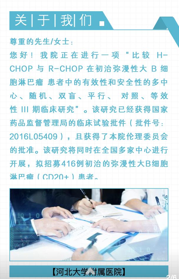 【临床试验招募】比较 H-CHOP 与 R-CHOP 在初治弥漫性大 B 细胞淋巴瘤患者中的有效性和安全性的多中心、随机、双盲、平行、对照、等效性 III 期临床研究