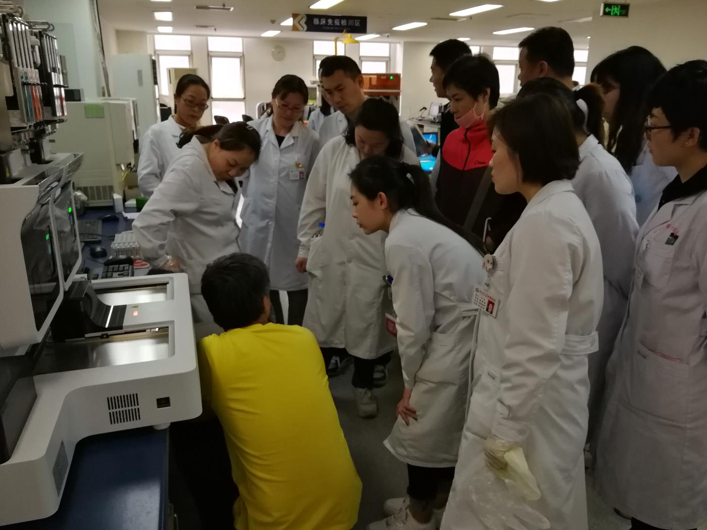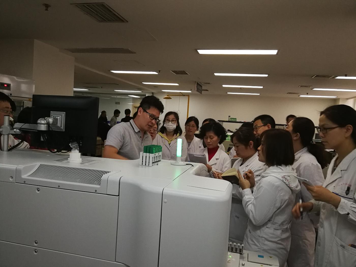 为保证新设备长久稳定运行,向患者提供优质医疗服务,达到“物尽其用”的效果,检验科以新设备的启用为契机,于四月份组织了保定地区免疫学术交流会,邀请省二院赵建宏、省三院冯忠军主任,石家庄五院戴二黑院长及检验科免疫专业资深专家为科室及保定地区检验专业人员做专题讲座,提升了与会人员业务能力,同时向兄弟单位展现了我院的积极变化。此外,检验科邀请希森美康高级技术人员,对新设备的使用保养、样本检测的工作原理、结果解读等分两批做了现场培训,确保科室工作质量。