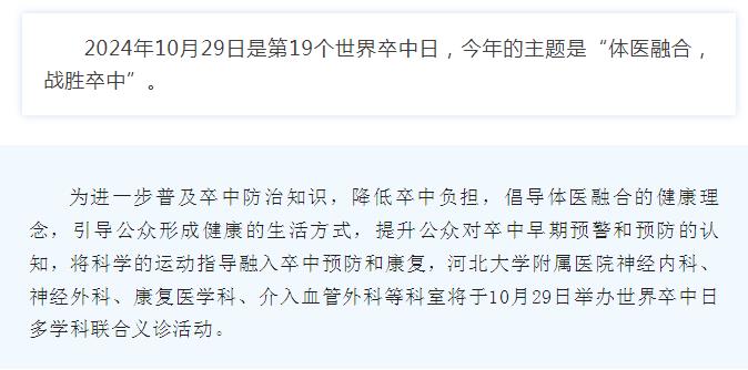 义诊预告| hy590海洋之神检测中心将开展世界卒中日多学科联合义诊活动