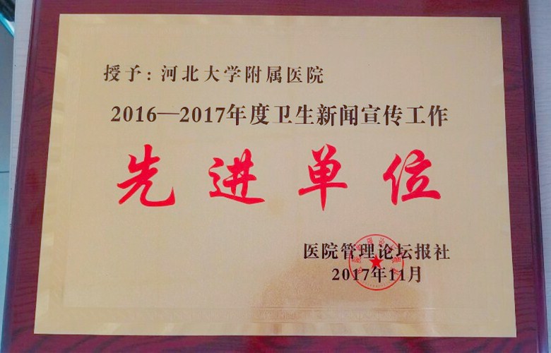 我院获2016-2017年度卫生新闻宣传工作先进单位