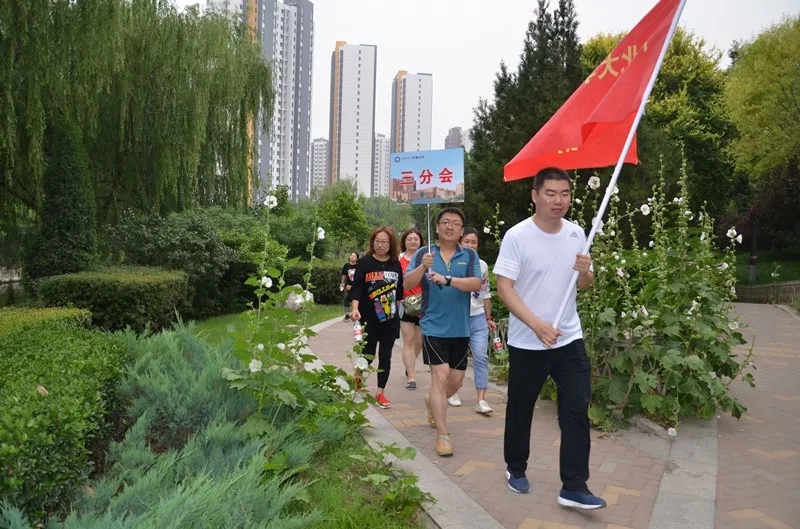 在工会及各分会的精心组织下,全院职工积极加入到健步走活动中。不管是院级领导,还是退休老专家,不管是外地学习的还是扶贫干部,不管是倒班的还是休假的,甚至有的带着娇娃上阵,全院职工都积极融入到健步走活动中,两周的时间每天都有不同的分会为主导兼有其他分会的参与。随着发令枪响, 300余人跟随旗手开始健步走活动。大家在一天的辛苦工作后行走在环境优美的公园小路,一路欢声笑语,兴致高昂,呼吸着新鲜空气,在锻炼身体的同时,体验着绿色环保出行带来的快乐,在放松身心的同时也增强了团队的协同意识,这样劳逸结合让大家身心得到放松,以更饱满的热情投入到工作中去,更好地为患者做好服务。