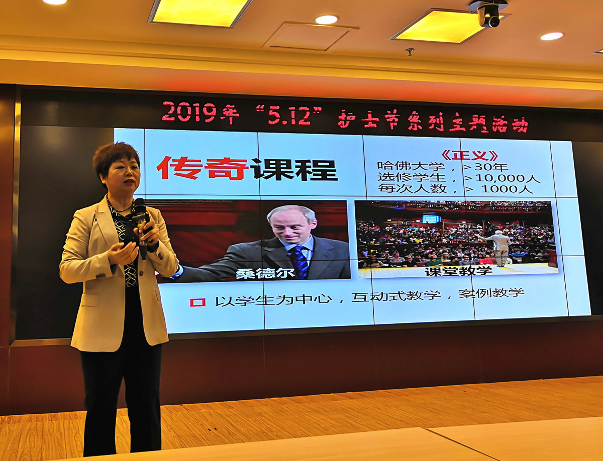 观摩会最后,外科护理教研组组长王景艳以“护理教学的思考与临床实施”为主题进行了精彩授课,教师们的爱岗精神及教书育人的初心感染了每一位与会者。