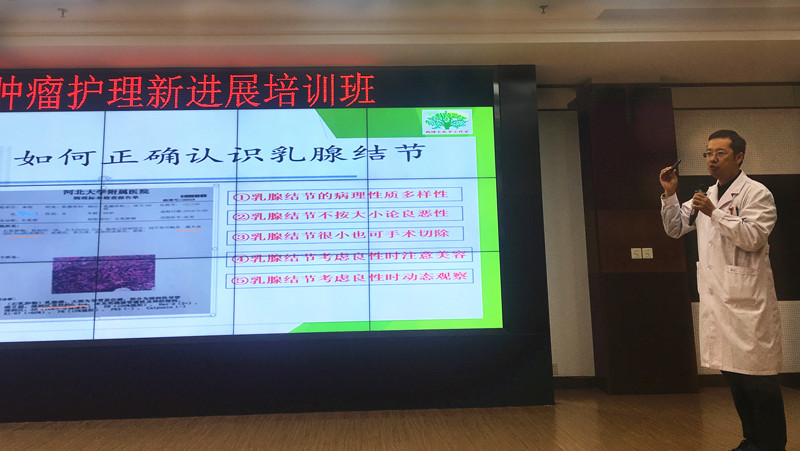 近日,我院肿瘤科在北院六楼会议室举办新形势下肿瘤护理新进展培训班。我院肿瘤科主任臧爱民出席会议并致辞,护理部副主任冯佳、高飒,肿瘤科科护士长薛桂花、田会平及全院相关科室护士参加会议。北京协和医院临床营养科主治医师康军仁、我院肿瘤内科副主任商琰红和乳腺外科主任医师陈鹊汀分别从PICC相关上肢静脉血栓、肺癌的诊疗及全生命周期乳腺健康常识等方面进行了授课。