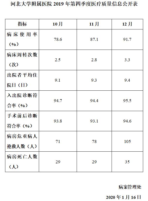 hy590海洋之神检测中心2019年第四季度医疗质量信息公开表