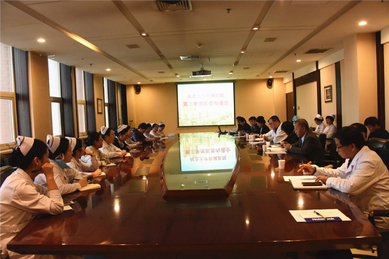 10月24日,我院在行政楼七层会议室召开了第三季度院级医患沟通座谈会,会议分为两部分进行,第二党总支部所属的22个病区共20余名患者代表参加了此次会议,我院党办室、院办室、财务处、医务处、护理部、门诊部、后勤服务中心、物资供应中心、基础建设中心、医学工程中心、安全保卫中心、药学部、医疗保险办公室、第二党总支部书记等行政职能处室负责人列席了此次座谈,会议由我院党委副书记陈冰主持。