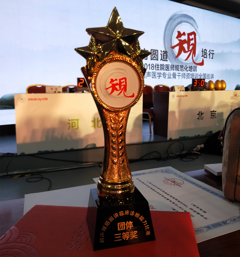 本次会议首次举办了青年医师带教演示大赛、住培生操作技能大比武和住培生临床诊断能力擂台赛。功能科住培医师张旭作为河北队的一员参加了此次技能大比武,面对全国层层选拔出的5支实力强队,河北队的5名参赛队员顶住压力,一路过关斩将,最终获得团体赛三等奖和个人优秀奖。此次比赛由各省派代表队参加,属于全国性质的技能大比拼,意义非常重大。临行前,我院功能科主任邸桂新和几位住培带教老师积极的组织赛前培训,利用一切可以抓紧的时间对科内的住培学员进行赛前上机模拟及临床诊断能力的训练。科内住培一年级和住培二年级的学员也积极参与此次赛前的筹备工作和实战演练,为明年的比赛积累经验、储备新生力量。