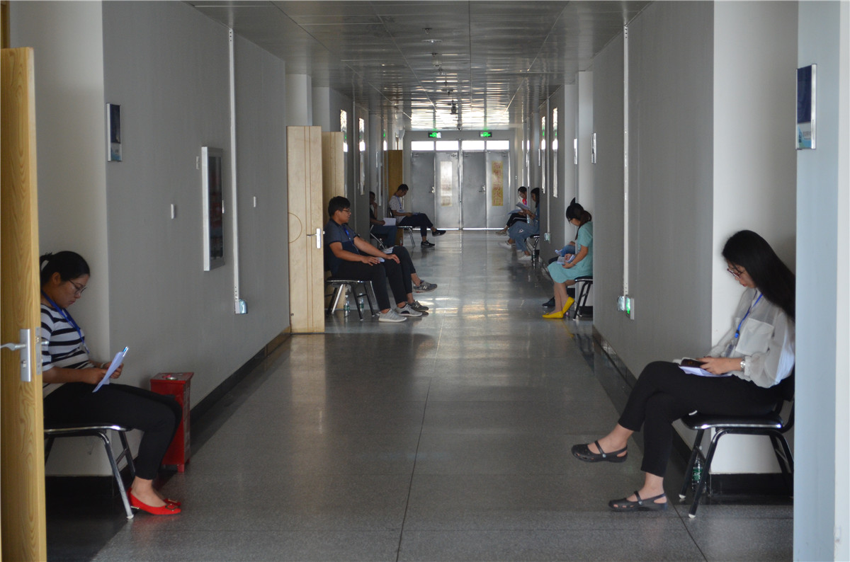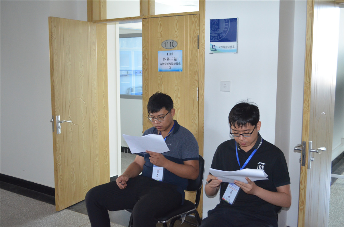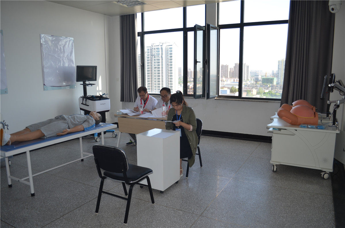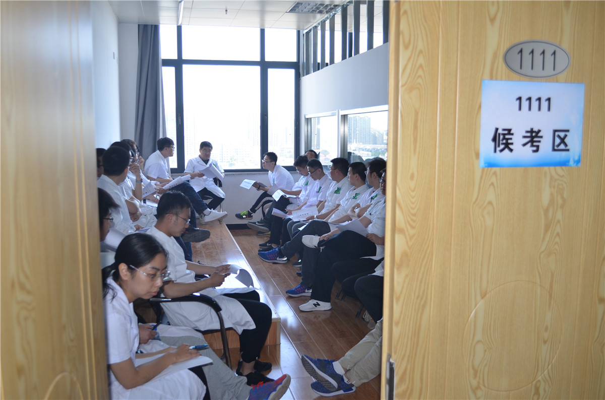 河北省卫生计生委科教处副处长刘丽,考试培训中心任素香,我院院长张海松、河北大学医学院副院长张春舫,河北大学医学院住院医师规培办公室主任李鹏等全程参加指导考试过程。考核期间,考务组成员每天早上六点半便早早来到考场检查各项工作的准备情况,叮嘱工作人员认真核对、做好服务,中午与工作人员一同简单用餐后放弃休息时间,加班加点做好考务工作。每天考核完成后,考核组和工作人员都要探讨总结相关经验,直到晚上九点才离开考场。我院102名考官不辞辛劳,延长下午工作时间,在三天内顺利完成考核任务,大大减少了考生及各类人员耗费的时间精力。我院、河北大学医学院对考核工作高度重视,考前多次召开协调会,认真讨论研究制定考试流程草案,科学的进行考站专业设计,对考官进行考前培训,对各类考务人员进行组织培养工作。针对考试资料物资后勤保障,安全保卫性工作制定详细计划。各工作人员职责分工明确,设计制作严细详实的考官手册、考生手册、工作人员手册、考试流程图、考场示意图等分发到位,为考试的顺利完成打下良好的基础。