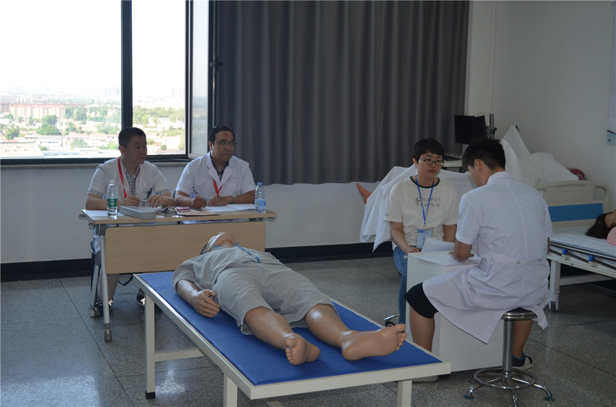 近日,河北省上半年住院医师规范化培训结业实践技能考核工作在我院、河北大学医学院成功举办。考核工作在省卫生计生委科教处、考试培训中心的指导下,在我院、河北大学医学院住院医师规范化培训办公室及全体工作人员的通力配合下顺利开展,最终圆满完成了对张家口、保定、廊坊三地区228名考生的考务工作。此次考试涵盖16个医学专业,分设16个专区,共计82个不同内容的考站,应用现代化的考试设施设备、模拟SP病人及其他各相关考试模具设施,在相关部门保障服务下顺利完成。