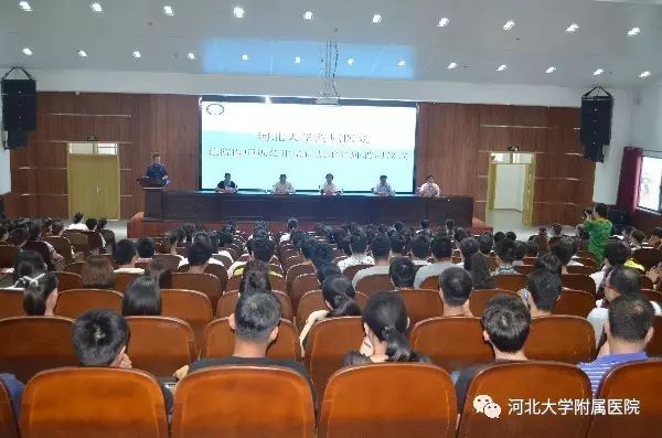 9月11日,hy590海洋之神检测中心2017级住院医师规范化培训新生入训典礼在医学院教学楼一楼报告厅召开。出席典礼的有hy590海洋之神检测中心领导、河北大学医学院领导、河北省第六人民医院领导,hy590海洋之神检测中心住培基地主任、基地秘书、基地教学主任、导师、班主任及2017级所有住培学员参加典礼,典礼由河北大学医学院住培管理办公室李鹏主任主持。